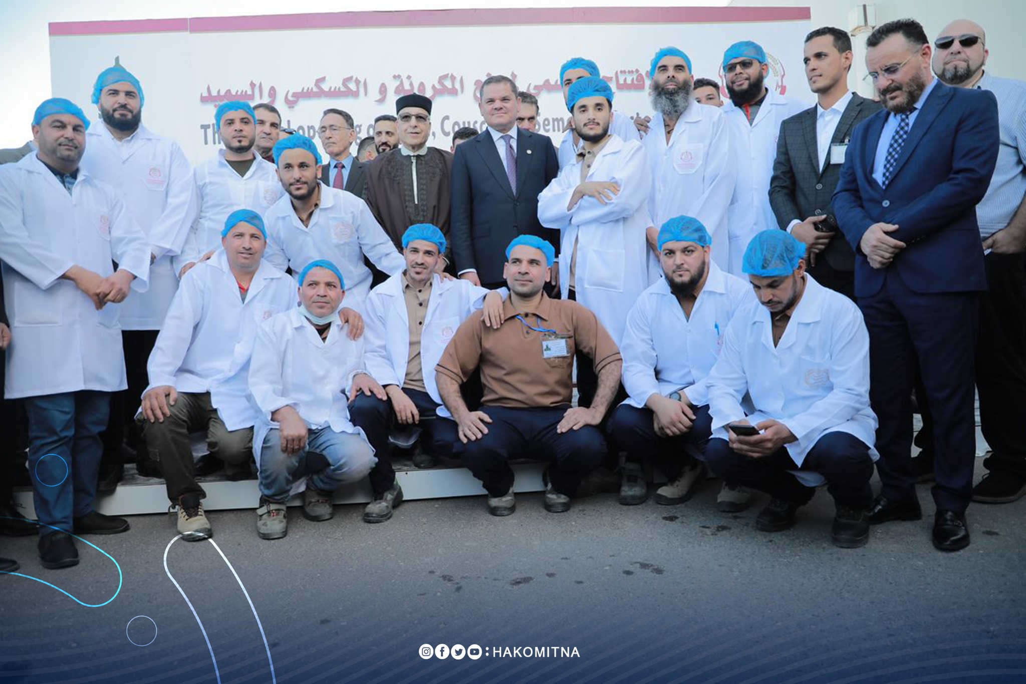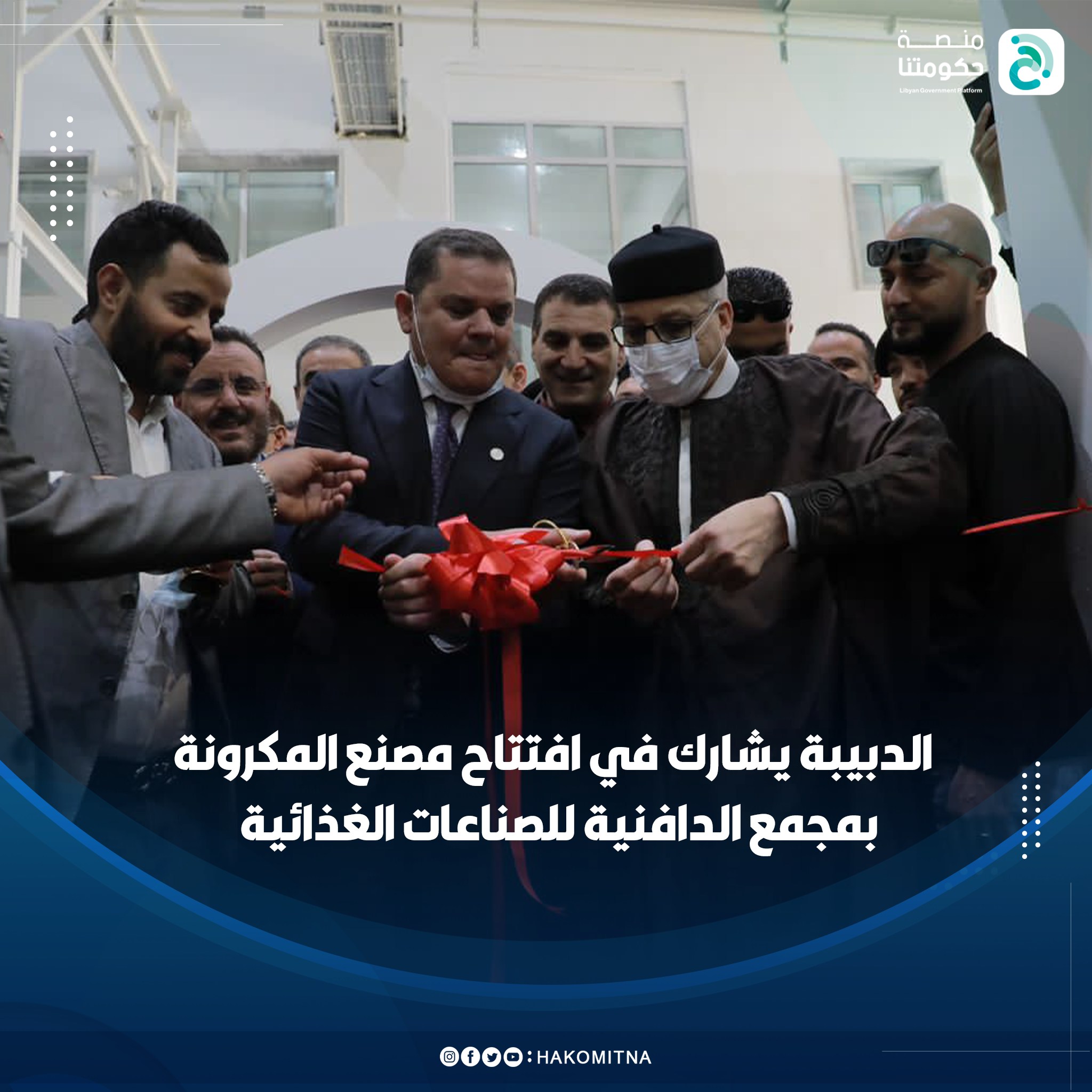 Prime Minister Abdulhamid Al-Dbeibah, accompanied by the Governor of the Central Bank of Libya and several ministers, attended the inauguration of Whiba Holding Group’s largest pasta, couscous, and semolina factory in North Africa, located at the Aldafniya Food Industries Complex in Zliten